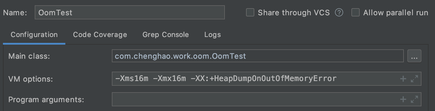 -Xms16m -Xmx16m -XX:+HeapDumpOnOutOfMemoryError